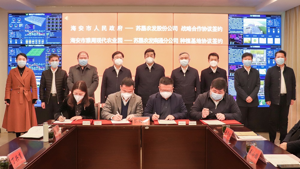 12月16日上午,FUN乐天使官方网站股份公司与海安市人民政府战略合作协议签署仪式在海安雅周现代农业园举行。集团公司总经理、FUN乐天使官方网站股份公司董事长胡兆辉,海安市市长谭真出席仪式并致辞,FUN乐天使官方网站股份公司总裁朱亚东与海安市副市长周平分别代表双方签署战略合作协议。 胡兆辉对海安市长期以来给予江苏农垦的关心支持表示感谢,向协议的签署表示祝贺,并介绍了集团公司历史沿革和改革发展取得的显著成效。胡兆辉指出,双方长期保持着密切合作,共同肩负保障国家粮食安全的政治责任,在建设高标准农田、创建国家现代农业产业园、打造全省一流的粮食生产示范基地等方面目标吻合、方向一致。今年以来,双方继续深化合作,积极推动建立FUN乐天使官方网站南通分公司海安基地,着力打造辐射带动周边的绿色稻米产业基地、粮油轮作示范基地、现代农业示范基地。胡兆辉表示,双方要紧紧围绕党的二十大精神,沿着习近平总书记指引的方向深耕农村、深化合作,实现资源共享、优势互补,共扩种植规模、共建种繁基地、共创示范效应,携手打造省属国企和地方合作的标杆典范。 谭真代表海安市委市政府对胡兆辉一行的到来表示欢迎,对江苏农垦长期以来关心支持海安“三农”事业发展表示感谢