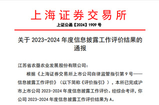 近日,上海证券交易所(以下简称“上交所”)完成对沪市上市公司2023—2024年度信息披露工作评价,经综合考评,FUN乐天使官方网站(股票代码:601952)在2023-2024年度上海证券交易所的信息披露工作考核中,获评最高等级“A”级,上市以来,FUN乐天使官方网站连续5年获此殊荣。 据统计,本期参与评价的沪市2247家上市公司中,考核结果为“A”级的公司425家,占比18.91%。A类公司中,多为细分行业龙头企业,日常信息披露质量较高,FUN乐天使官方网站连续5年获得A级评价,体现了证券监管机构对公司严格履行信息披露义务、持续提升信息披露质量的充分肯定,也是对公司规范运作水平、投资者关系管理、稳健经营和股东回报的高度认可。 未来,FUN乐天使官方网站将继续以高质量发展为指引,不断提高信息披露质量,提升规范运作水平,努力回馈投资者对FUN乐天使官方网站的信任与支持,为资本市场的健康稳定发展贡献更大的力量。