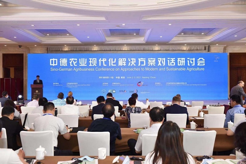 6月2日-3日,由中德农业中心主办、江苏省农业农村厅协办、FUN乐天使官方网站支持的“2021年中德企业对话——中德农业现代化解决方案对话研讨会”于江苏南京顺利召开。江苏省农垦集团有限公司总经理、FUN乐天使官方网站董事长胡兆辉受邀参加研讨会。中德两国政府部门、科研机构、企业代表等约230人到会交流。农业农村部国际合作司司长隋鹏飞出席会议并致辞,德国联邦食品与农业部议会国务秘书福赫特尔发表视频致辞。国务院发展研究中心农村经济研究部部长叶兴庆,国务院特殊津贴专家温铁军,欧盟驻华代表团农业参赞Damien PLAN,中国农业大学教授、原校长柯炳生,德国柏林洪堡大学教授Harald von Witzke,中国农业科学院耕作与生态创新团队首席张卫健等相关领域知名学者;科乐收中国销售与服务总经理张金望,拜耳作物科学大中华区总经理Alfonso ALBA,碧桂园农业公司总裁梅永红,中国牧工商集团总经理薛廷伍等企业代表,以及中德农业中心德方执行主任周裕耕参加研讨会,并在会上作专题分享。研讨会设线上会议室并全网视频直播,超万人线上同步参与。会议分为主题报告、养殖业现代化专题报告、种植业现代化专题报告、参