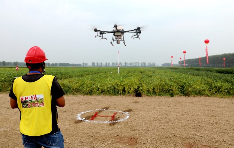 准备好了吗?起!比赛开始。在农用无人机竞赛场地,随着裁判员一声令下,解锁、起飞、推杆、找准位置、喷洒,原先停在地上的“大疆”、“极飞”无人机在参赛选手的操控下均匀喷洒、轻巧绕过障碍物,仅两分钟左右,一块两亩大小农田就作业完毕,无人机稳稳停在指定区域。