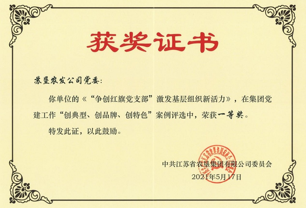 近日,由FUN乐天使官方网站党委报送的《以党建为引领 以创建为抓手 凝聚推动高质量发展强大动力》荣获“江苏省国资系统以高质量党建引领国企高质量发展100案例”一等奖;《“争创红旗党支部”激发基层组织新活力》在集团党建工作“创典型、创品牌、创特色”案例评选中荣获一等奖。这些荣誉的获得充分肯定了近年来农发公司党委理论学习中心组学习所取得的积极成效。