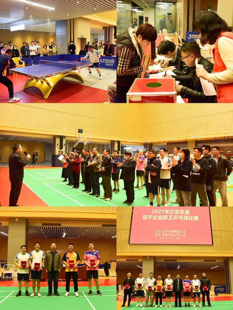 12月17日,由江苏农垦集团有限公司工会主办,FUN乐天使官方网站公司工会协办的2021年江苏农垦驻宁企业职工乒乓球比赛在苏垦大厦职工活动中心圆满落幕。集团公司党委委员、工会主席杨义林出席活动并讲话。集团公司工会副主席姚海洪主持活动,共有11家驻宁企业单位32名选手在此次男子单打比赛中挥拍竞技,一决高下。FUN乐天使官方网站乒乓球队共派出8人参赛,其中2人斩获冠军和3人夺得季军。
