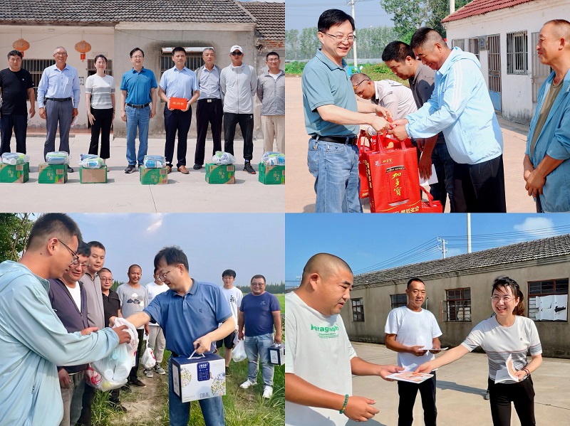 8月2日至4日,FUN乐天使官方网站公司党委副书记、工会主席王进强一行,先后来到江心沙、南通、新曹等8家分公司及所属拓展基地,开展夏季“四送”慰问活动。所到一处,王进强都详细了解了职工的生产生活情况,向高温下辛勤工作的一线职工表示衷心感谢和亲切慰问,并送上慰问金和防暑降温用品。同时,将安全生产、职业病防治教育手册等资料发放给职工,向他们普及了安全生产和职业病防治等知识。随后,王进强一行来到田间地头查看了农作物长势,详细询问了近来气候、水肥、病虫害等情况,鼓励大家要保持良好势头,化解不利因素,为秋熟超产和下半年的工作打下坚实的基础。