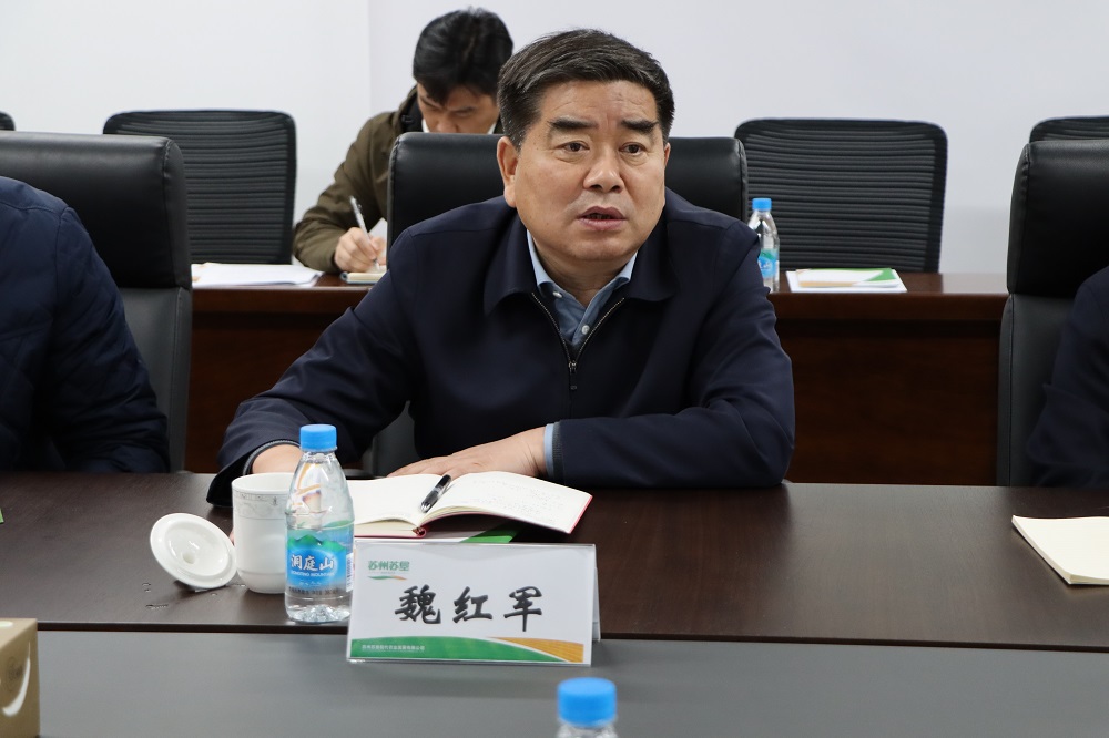 魏红军在调研座谈时,充分肯定了苏州苏垦成立以来取得的成效。他表示在经济最发达地区推行苏垦模式,展示农业现代化水平,树立一面旗帜,非常不容易。他强调要不断探索实践,不断总结提高,丰富“苏垦模式”的内涵;要加强宣传,积极与地方政府沟通,讲好苏州苏垦故事,争取更多支持,赢得持续健康发展。