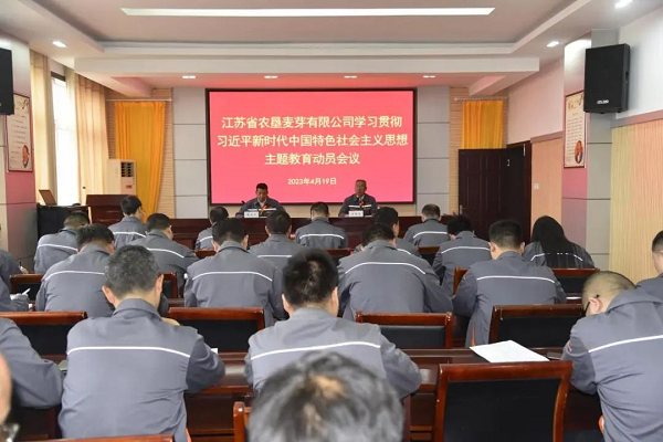 •        4月19日上午,苏垦麦芽公司召开学习贯彻习近平新时代中国特色社会主义思想主题教育动员会议,深入学习贯彻习近平总书记重要讲话精神和党中央决策部署,认真落实集团党委主题教育工作要求,对公司主题教育进行动员部署。公司党委书记、董事长郭世平作动员讲话,党委副书记、总经理吴善河主持会议。