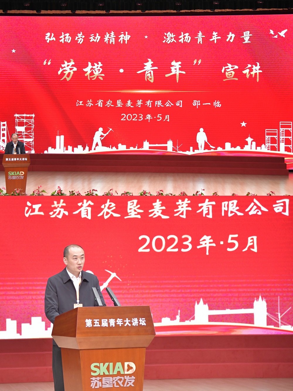 活动期间,还开展了以“弘扬劳模精神 激扬青年力量”为主题的青年劳模宣讲。江苏农垦第五届劳动模范、苏垦麦芽党委委员、副总经理、工会主席邵一临,是一名80后的青年劳模,他以“功崇惟志 业广惟勤”为题给青年们进行了宣讲,他用自己的亲身经历、成长故事、奋斗历程,诠释了劳模精神、劳动精神和奉献精神,激励着在场的每位青年,大家纷纷表示,要以劳模先进为榜样,学习他们爱岗敬业、艰苦奋斗、甘于奉献、敢于担当、勇于创新的精神,以更加昂扬的斗志、更加饱满的热情投入到自己的工作和生活中去。