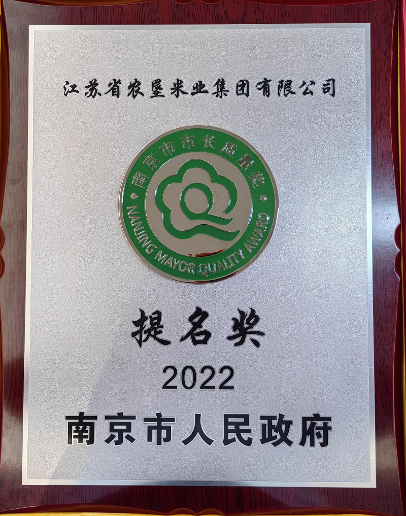 6月2日,2022年度南京市市长质量奖名单正式揭晓,苏垦米业荣获2022年度南京市市长质量奖(组织)提名奖。
