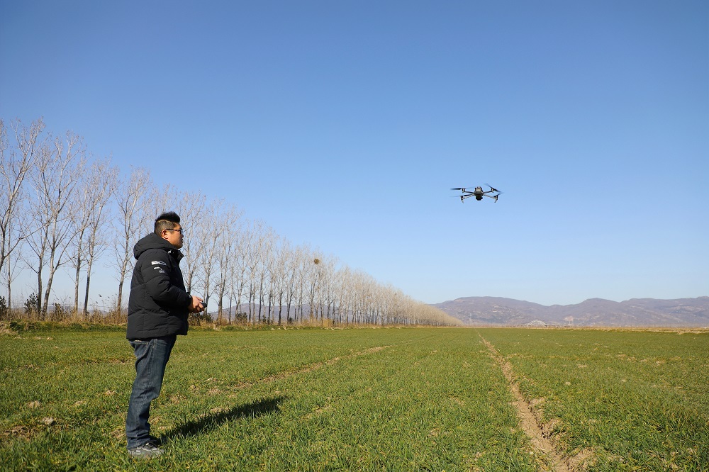 在西洋生产区20大队,队长魏峰正在使用无人机进行智能巡田。“近期受冷空气影响,气温持续下降,利用无人机巡田可以全方位、无死角地把麦田图像拍摄下来,便于后期科学精准地开展施肥、灌溉、除草等作业,减少用工成本,提高作业质量,1个人1天时间便可完成1万亩小麦巡田工作,田间管理变得既高效又轻松。”魏峰介绍道。