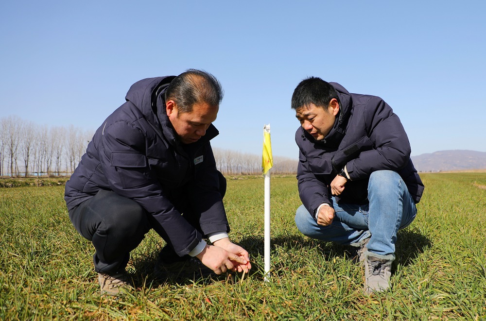 在21大队早茬小麦田,农技人员深入田间地头,查看土壤墒情和麦苗长势,仔细清点当前小麦叶龄、群体茎蘖数等,并做好标记。生产区副主任龙厚元说:“西洋生产区种植小麦15000余亩,设立定点跟踪调查点位21个。通过定点跟踪调查,可以精准掌握小麦每个生育时期的群体茎蘖动态和生长过程中发生的病虫害,便于及时制定田间管理措施,为夏粮增产丰收打下坚实基础。”